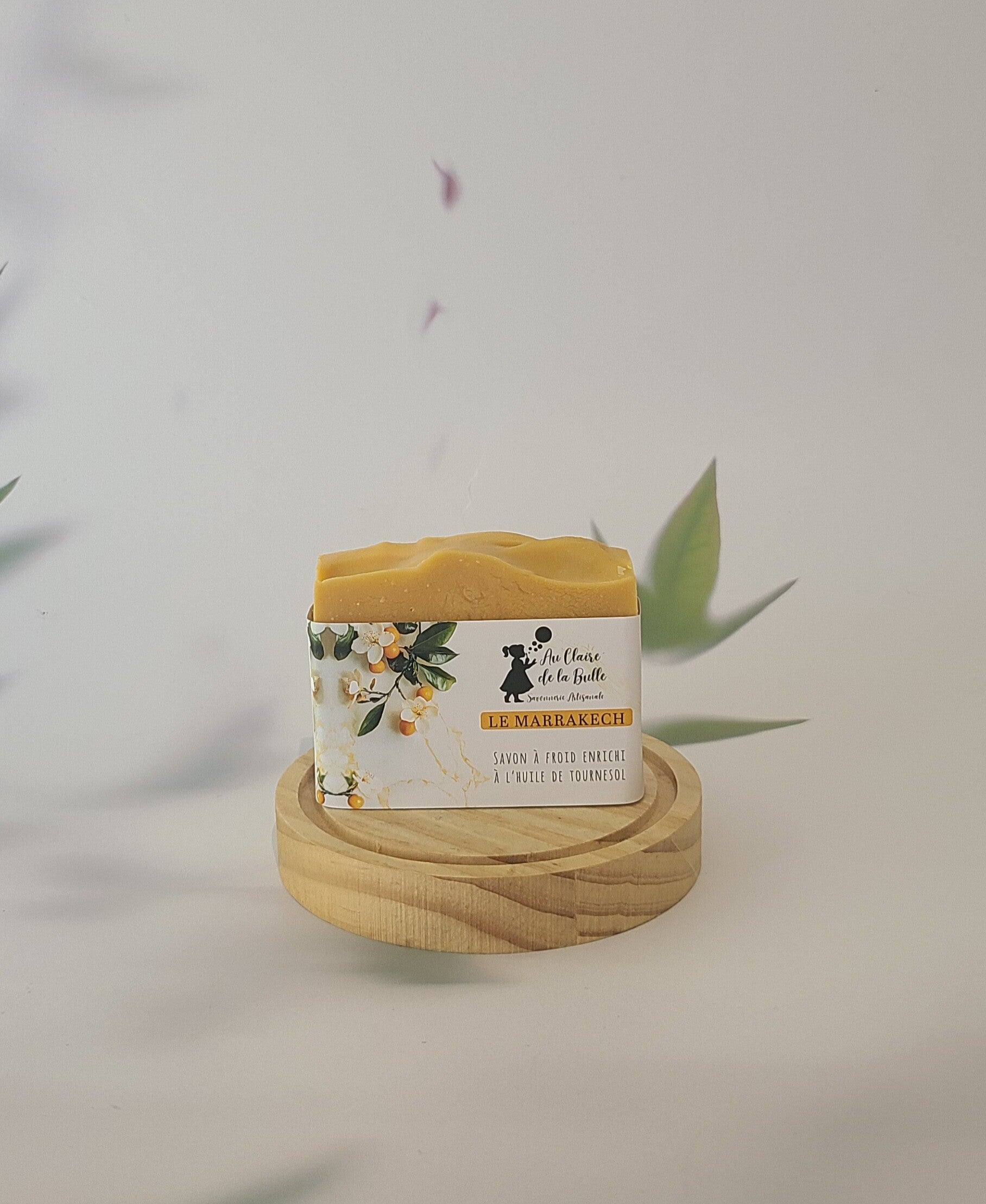 Plongez au cœur des ruelles de Marrakech avec ce savon à la fleur d’oranger, inspiré par la chaleur et la douceur du Maroc.