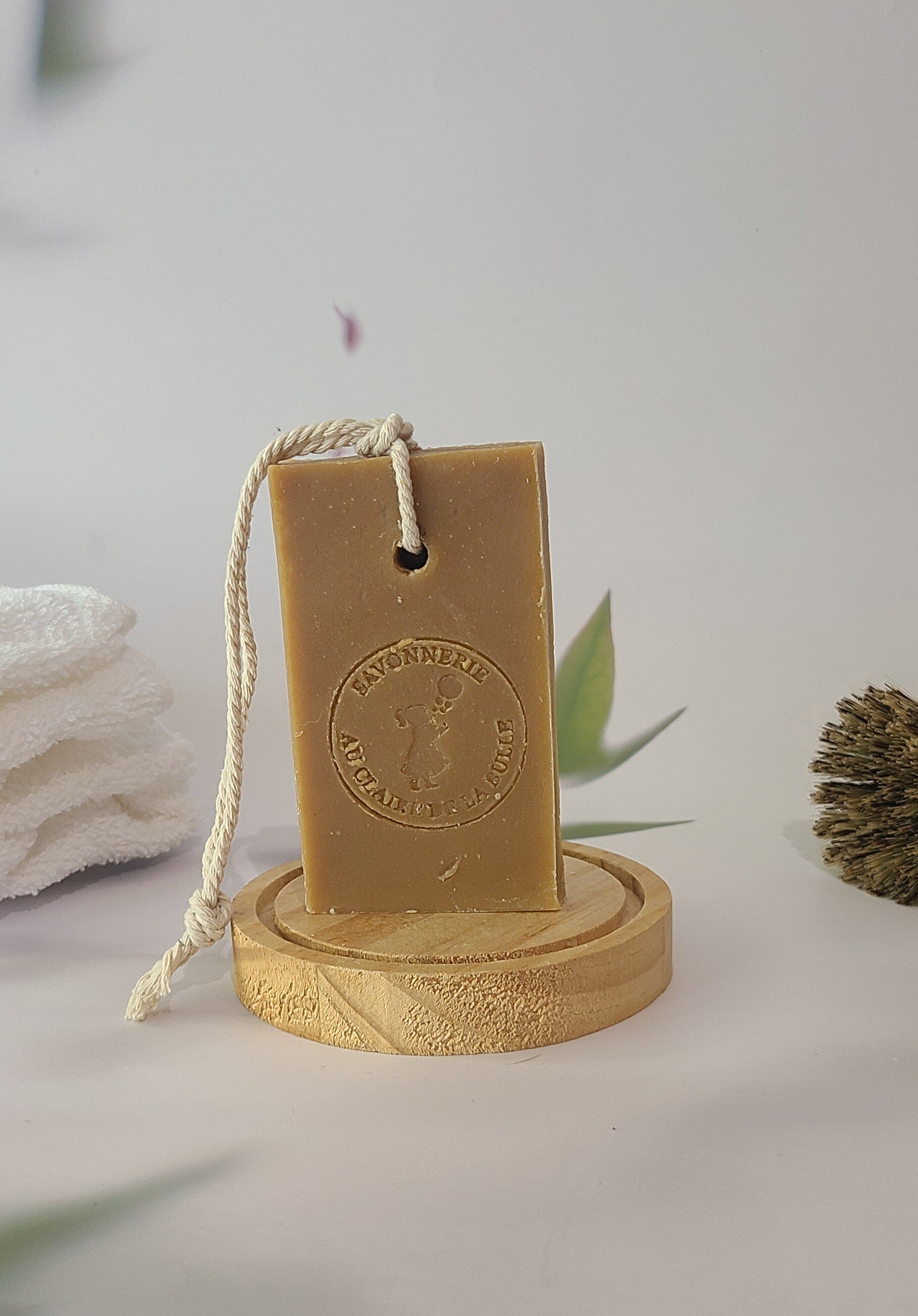 Découvrez l'édition limitée du savon artisanal, désormais proposée dans un format rectangulaire élégant, muni d’une corde naturelle pour une utilisation encore plus pratique. Suspendu dans la douche ou près du lavabo, il sèche facilement.